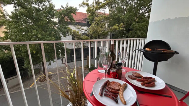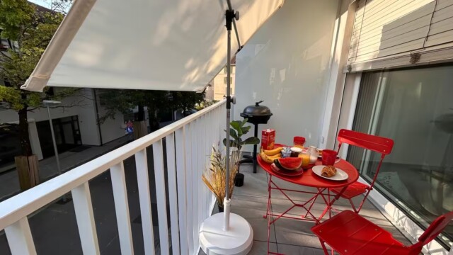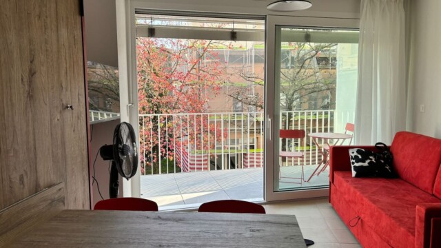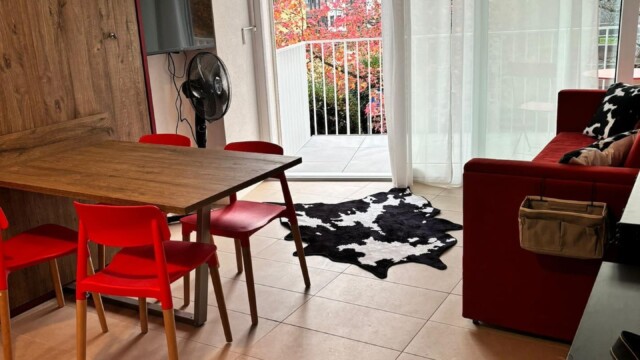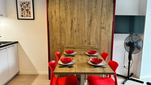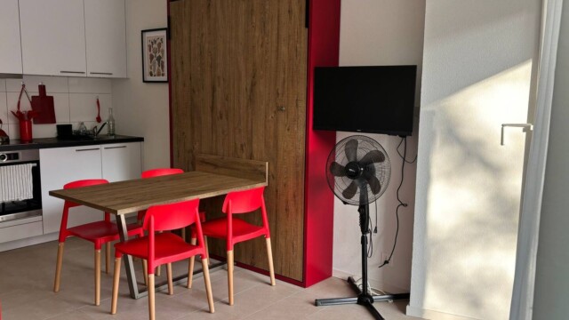 À l’intérieur, vous trouverez un aménagement moderne et fonctionnel. Un lit escamotable double se replie facilement pour optimiser l’espace, et le canapé se transforme ingénieusement en lit superposé, offrant des couchages confortables pour des invités supplémentaires. La cuisine est entièrement équipée pour tous vos besoins culinaires, avec une plaque à induction, un four, un micro-ondes et un réfrigérateur – idéale pour préparer aussi bien un petit-déjeuner simple qu’un dîner complet. Après une journée à l’extérieur, détendez-vous sur le spacieux balcon et profitez de l’air frais ainsi que de la vue sur le quartier.